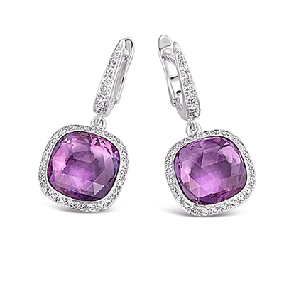 Purple variety of the mineral quartz, often forms large, six-sided crystals. Fine velvety-colored gems come from African and South American mines. In demand for jewelry at all price points.